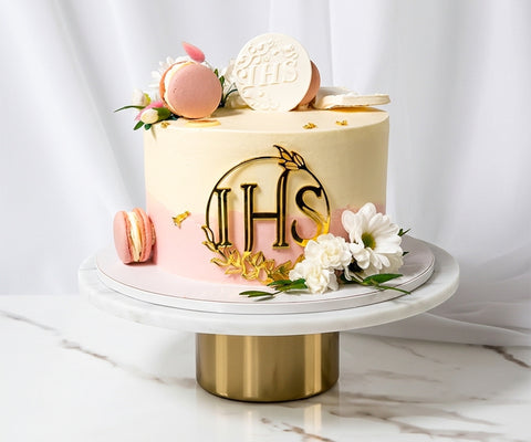 Tort kwiatowy z makaronikami komunię